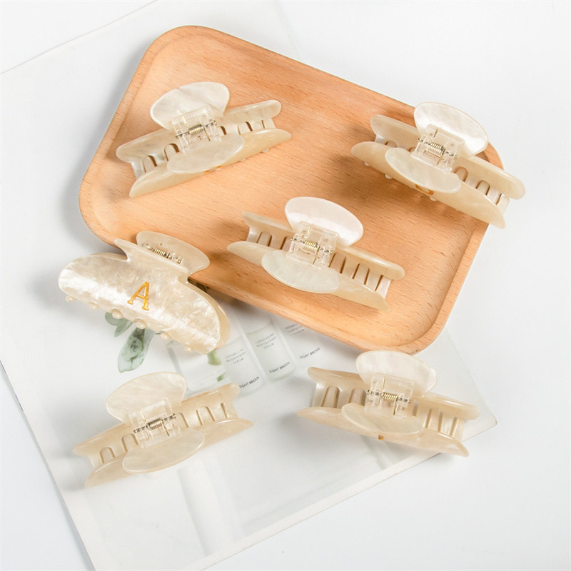 Productbeschrijving van trendy 8cm gouden letter acryl haarklauwclips voor vrouwen